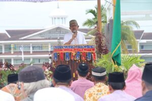 Grahapost.com Krui – Bupati Pesisir Barat (Pesibar) Agus Istiqlal melaksanakan Sholat Idulfitri 1 Syawal 1444H bersama lapisan masyarakat bertempat di Lapangan Upacara, Komplek Perkantoran Pemerintah Kabupaten (Pemkab) Pesibar. Sabtu (22/4/2023).