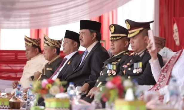 Grahapost.com Pringsewu – Kapolres Pringsewu AKBP Benny Prasetya, S.H., S.IK., Memimpin Upacara Penurunan Bendera Merah Putih Peringatan Hari Ulang Tahun (HUT) Republik Indonesia (RI) ke-78 Tahun 2023, di Lapangan Pemerintah Daerah (Pemda) Kabupaten setempat, Kamis (17/08/2023).