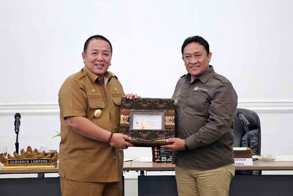 Grahapost Lampung – Gubernur Lampung Arinal Djunaidi menerima kunjungan Kerja Wakil Gubernur Kalimantan Tengah Edy Pratowo dalam rangka mempelajari kesuksesan Provinsi Lampung dalam bidang pertanian, di Mahan Agung, Bandar Lampung, Senin (19/2/2024).