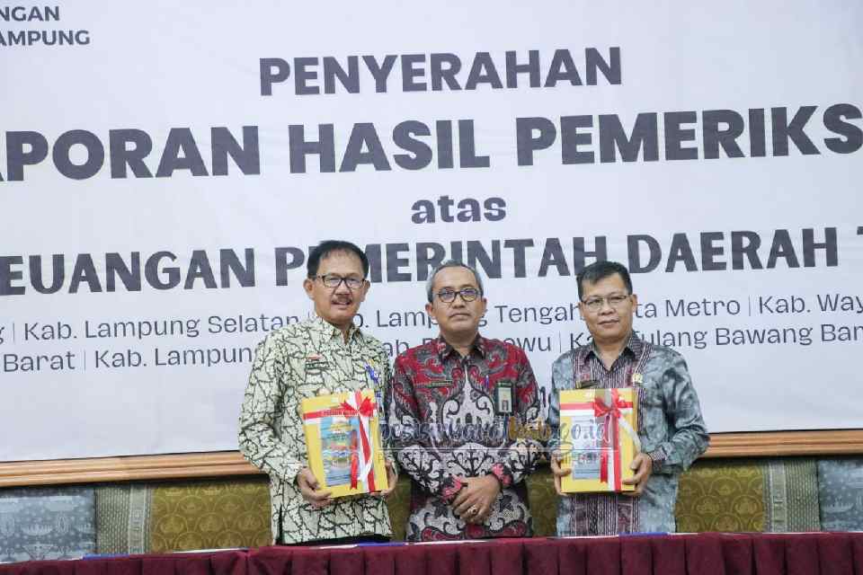 Grahapost Krui – Bupati Pesisir Barat (Pesibar) Agus Istiqlal, menghadiri penyerahan Laporan Hasil Pemeriksaan (LHP) atas laporan keuangan Pemkab Pesibar Tahun 2023, di Kantor Badan Pemeriksa Keuangan (BPK) Perwakilan Provinsi Lampung, Jumat (3/5/2024).