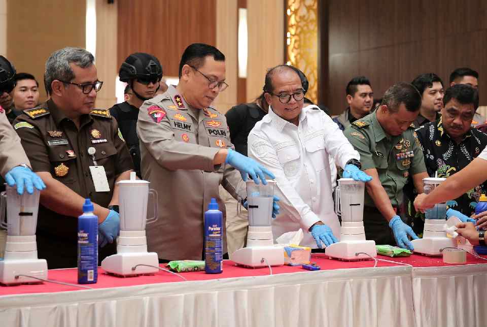 Grahapost Lampung Selatan – Pj. Gubernur Lampung Samsudin dan Kapolda Lampung Irjen Polisi Helmy Santika melakukan Pemusnahan Barang Bukti Narkotika Hasil Sitaan Polda Lampung Tahun 2024, yang dilaksanakan di Gedung Serba Guna Presisi, Mapolda Lampung, Lampung Selatan, Kamis (27/6/2024).