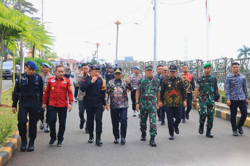 Grahapost Bandar Lampung – Pj. Gubernur Lampung Samsudin mengikuti Apel Gelar pasukan dan Perlengkapan dalam rangka pengamanan Pilkada Serentak Tahun 2024 Provinsi Lampung di Lapangan Korpri, Jum’at (19/7/2024).