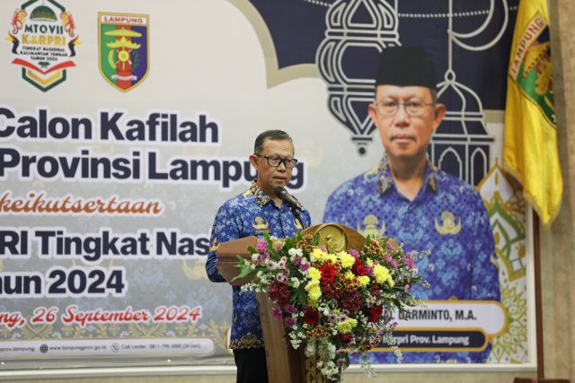 Grahapost Bandar Lampung – Ketua Dewan Pengurus Korps Pegawai Republik Indonesia (Korpri) Provinsi Lampung Fahrizal Darminto membuka Seleksi Calon Kafilah MTQ Korpri Tingkat Nasional VII, di Balai Keratun Lt. III, Kantor Gubernur Lampung, Bandar Lampung, Kamis (26/09/2024).