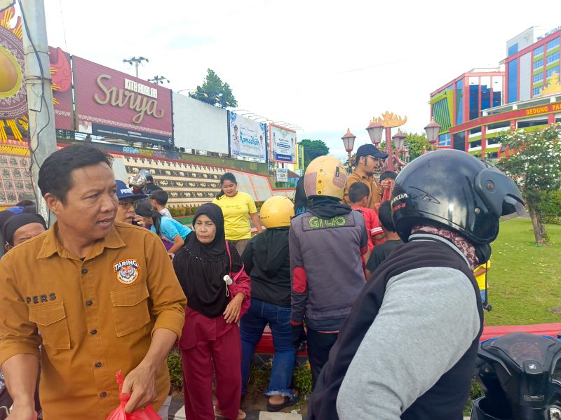 Ratusan warga antre untuk mendapat bantuan dari Taring Lampung. Antusiasme warga tak terbendung melihat sejumlah pengurus Taring Lampung membagi-bagikan bantuan nasi kotak dan takjil berbuka puasa.