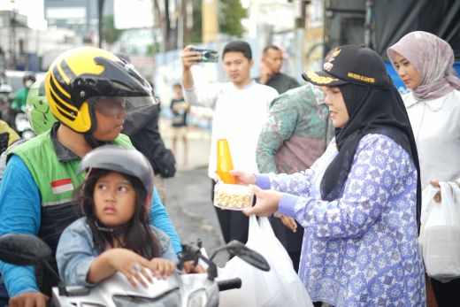 Grahapost Bandar Lampung – Walikotaota Bandar Lampung Eva Dwiana bersama Kapolresta Bandar Lampung Kombes Pol Alfret Jacob Tilukay dan Dandim 0410 Kolonel Arh Tan Kurniawan kompak bagikan takjil untuk warga Bandar Lampung.