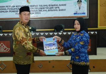 Grahapost Tubaba – Bupati Tulang Bawang Barat (Tubaba) Novriwan Jaya, menyerahkan Surat keputusan pengangkatan Pegawai Negeri Sipil (PNS) formasi tahun 2024 dan surat pengangkatan CPNS tahun 2025 Formasi Lulusan STTD di Lingkup Pemkab Tubaba. Acara tersebut berlangsung di Aula Lt. III Kantor Pemda Tubaba pada Kamis (8/5/2025).