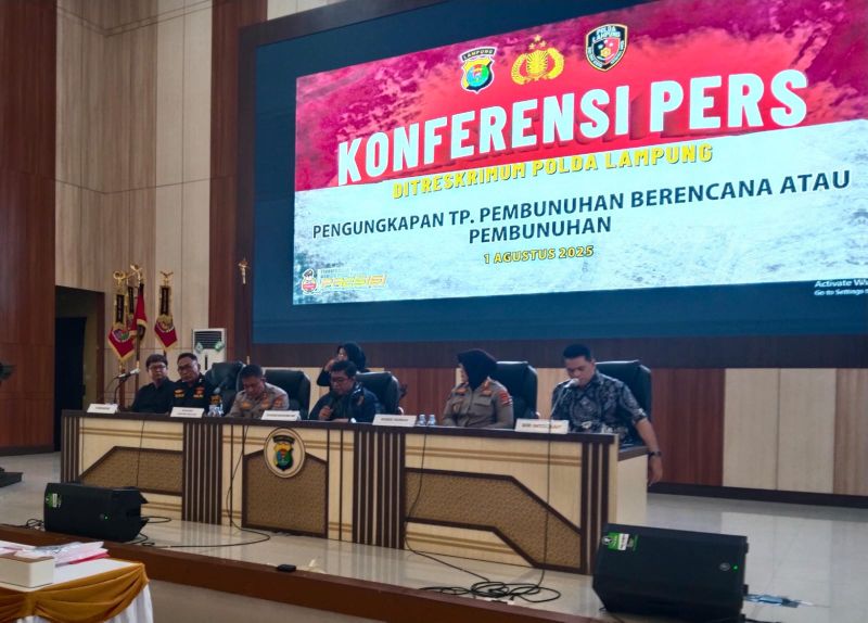Konferensi pers tersebut digelar pada Jumat (1/8/2025) di Gedung Serba Guna (GSG) Polda Lampung, dipimpin langsung oleh Dirreskrimum Kombes Pol Indra Hermawan.