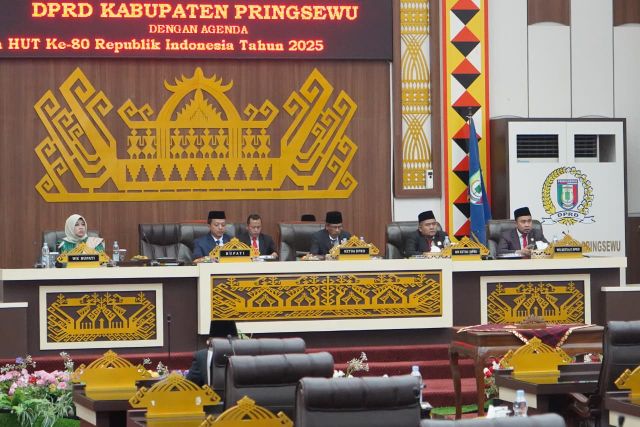 Grahapost Pringsewu – Rapat paripurna istimewa mendengarkan pidato kenegaraan Presiden RI dalam rangka HUT ke-80 proklamasi kemerdekaan Indonesia pada sidang tahunan MPR serta sidang bersama DPR dan DPD RI digelar di gedung DPRD Pringsewu, Jumat (15/08/2025).
