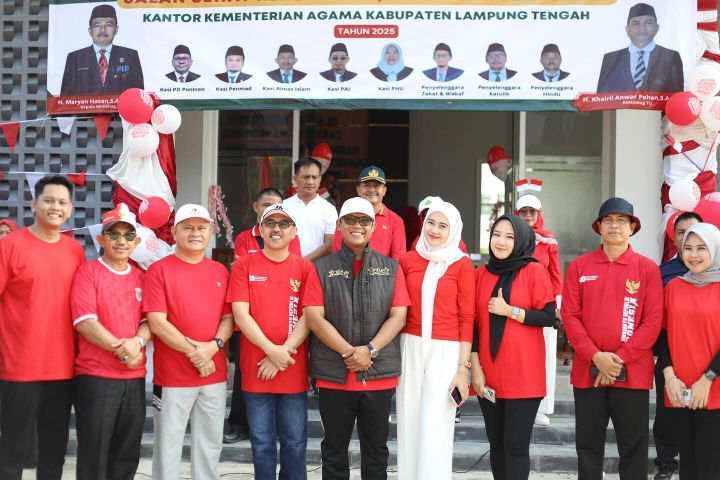 Grahapost Lampung Tengah – Dalam rangka memperingati Hari Ulang Tahun ke-80 Kemerdekaan Republik Indonesia, Bupati Lampung Tengah, Ardito Wijaya, turut serta dalam kegiatan jalan sehat sejauh 2 km yang digelar oleh Kantor Kementerian Agama (Kemenag) Kabupaten Lampung Tengah, bekerja sama dengan Bank Rakyat Indonesia (BRI) dan Bank Syariah Indonesia (BSI).