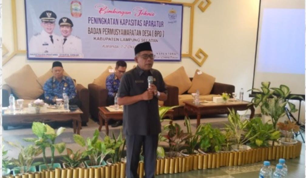 Grahapost Kalianda – Anggota Komisi I Dewan Perwakilan Rakyat (DPRD) Lampung Selatan, Dwi Riyanto, menghadiri kegiatan bimbingan teknis (Bimtek) Peningkatan Kapasitas Aparatur Badan Permusyawaratan Desa (BPD) yang dibuka langsung oleh Bupati Lampung Selatan, Radityo Egi Pratama. Kegiatan tersebut dipusatkan di Aula Hotel Negeri Baru Resort, Kalianda, Rabu (1/10/2025).