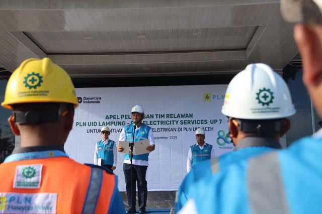 Grahapost Bandar Lampung – PT PLN (Persero) terus menunjukkan komitmennya untuk hadir dan membantu masyarakat Aceh yang terdampak banjir dan tanah longsor. Sebagai bentuk respon cepat dan kepedulian bersama, apel pelepasan relawan digelar oleh PLN Unit Induk Distribusi (UID) Lampung bersama PLN Electricity Services UP 7 Sumbagsel untuk mendukung percepatan pemulihan kelistrikan di wilayah terdampak bencana.