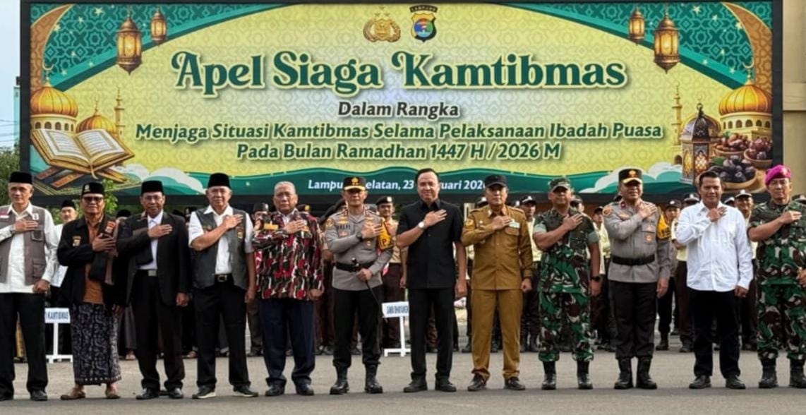 Apel Siaga dipimpin oleh Kapolda Lampung dan diikuti oleh peserta dari berbagai instansi sebagai wujud komitmen bersama dalam memberikan rasa aman dan nyaman kepada masyarakat selama Ramadan 1447 H.(*)