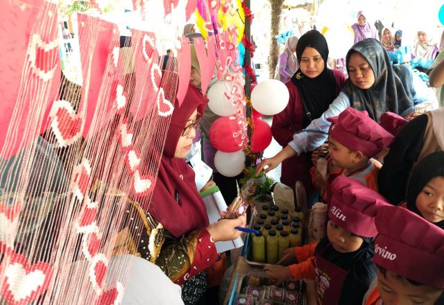 Antusiasme terlihat jelas. Orang tua tak sekadar mendampingi, tetapi juga turut berinteraksi, membeli, bahkan memberi semangat kepada anak-anak yang sedang belajar menjual produknya.