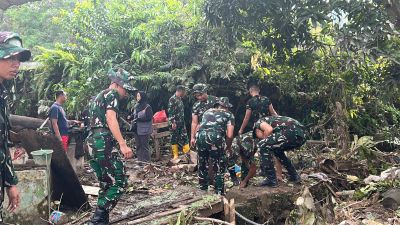 Kegiatan ini melibatkan ratusan personel yang difokuskan pada perbaikan tanggul sungai, pembersihan aliran air, serta penanganan talut yang rusak akibat banjir.