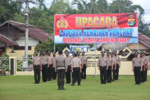 Kapolres Lampung Barat Pimpin Upacara Kenaikan Pangkat 73 Personel